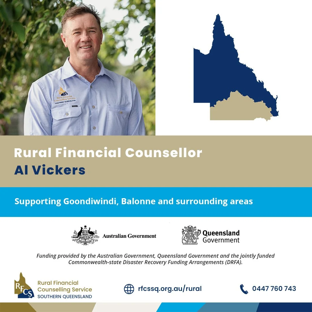 If you would like to contact Al for free, confidential and impartial financial support, click 🖱️here to get in touch https://rfcssq.org.au/rural/al-vickers/